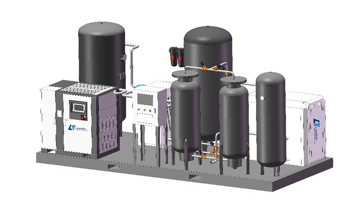 Η σειρά BCP είναι ένα ενσωματωμένο σύστημα παραγωγής υψηλής πίεσης αζώτου, το οποίο παρέχει αξιόπιστες πηγές αζώτου διαφόρων βαθμών καθαρότητας κατά παραγγελία. Χρησιμοποιώντας τεχνολογία φιλτραρίσματος PSA (Pressure Swing Adsorption) χαμηλής πίεσης με διπλό πύργο, συμπιέζει τον ατμοσφαιρικό αέρα μέσω συμπιεστή, αφαιρεί τις ακαθαρσίες μέσω φίλτρων και χρησιμοποιεί ξηραντήρα ψύξης για την αφαίρεση υγρασίας, ακολουθούμενο από PSA και συμπίεση N2, παράγοντας άζωτο υψηλής καθαρότητας (99,99%) σε καθορισμένες υψηλές πίεσης. Αυτό καλύπτει τις απαιτήσεις για εφαρμογές λέιζερ υψηλής ποιότητας χωρίς οξείδωση.
